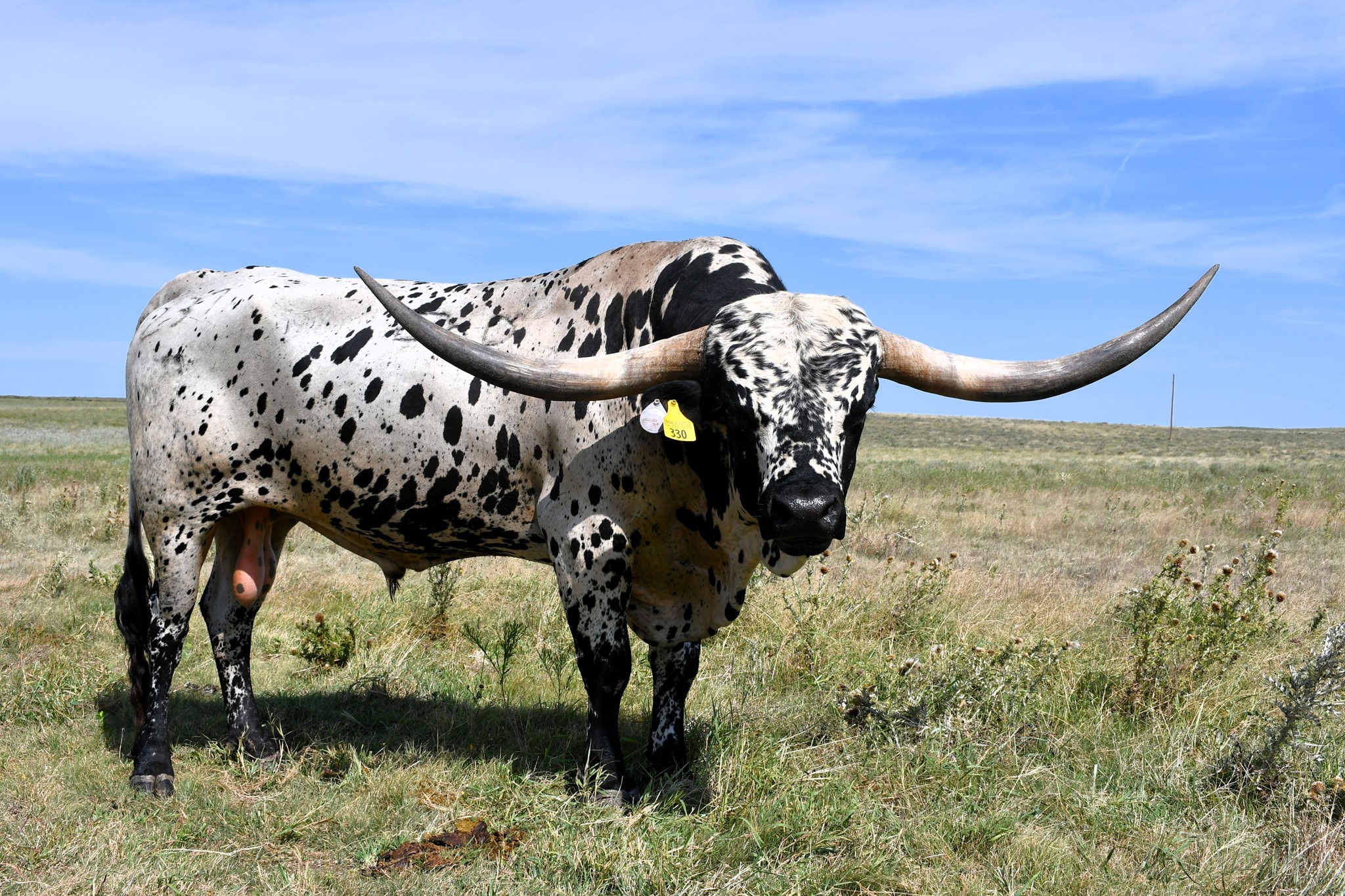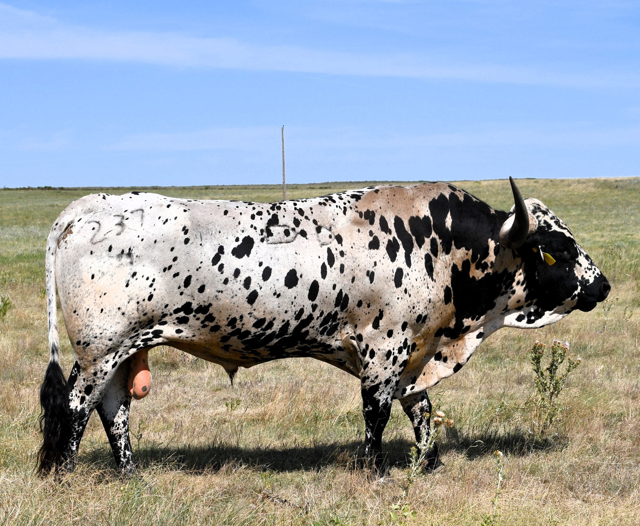 Gentle bull with great coloring that he passes on to his progeny conventional Semen available for $100 a straw, stored at Champion Genetics.